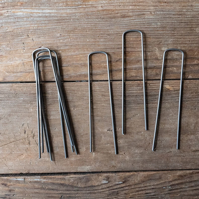 6″ x 1″, U-shaped, 11-gauge, hard-drawn steel pins. Angle-cut ends for faster and easier installation. Made in USA.