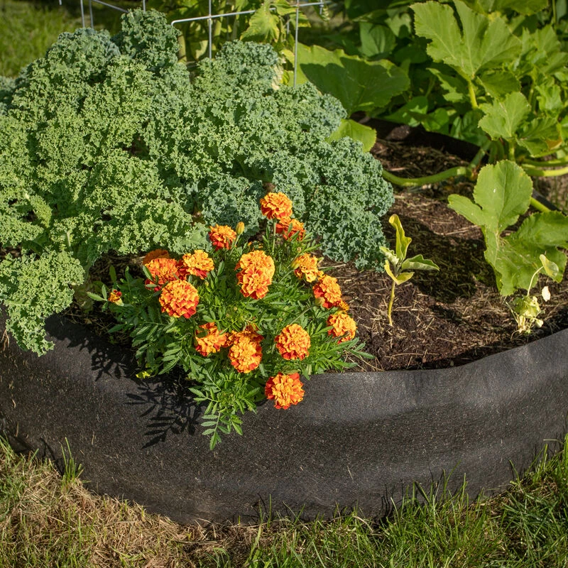 Simply unfold, fill with your favorite potting media, and plant. Made from durable, weatherproof fabric that provides excellent drainage, warms quickly in the spring, and releases excessive heat in the summer through evaporative cooling. Use season after season for growing your favorite vegetables and flowers. 12″ H x 50″ diameter. Holds 13.7 cubic ft. of soil. Made in USA.