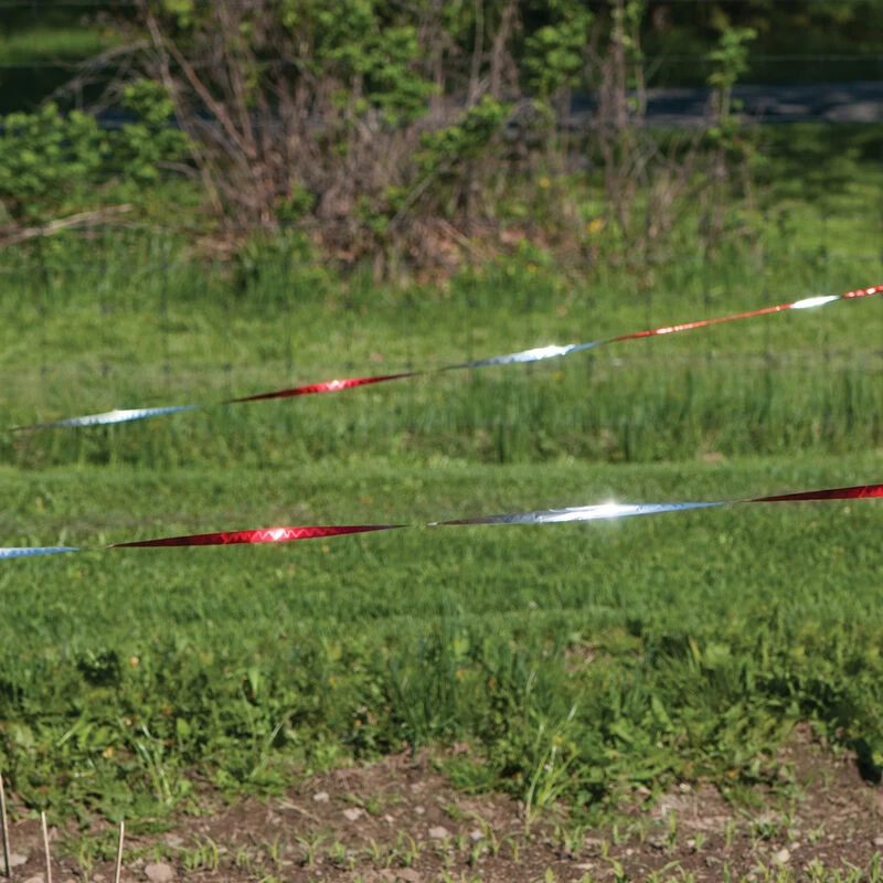 Silver and red metalized tape. 1/2 inch wide. 290′ roll.