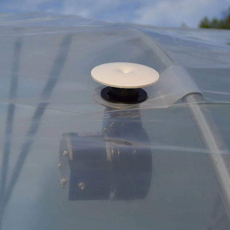 - Inflatable double-poly roof with blower fan for a few extra degrees of cold-weather protection