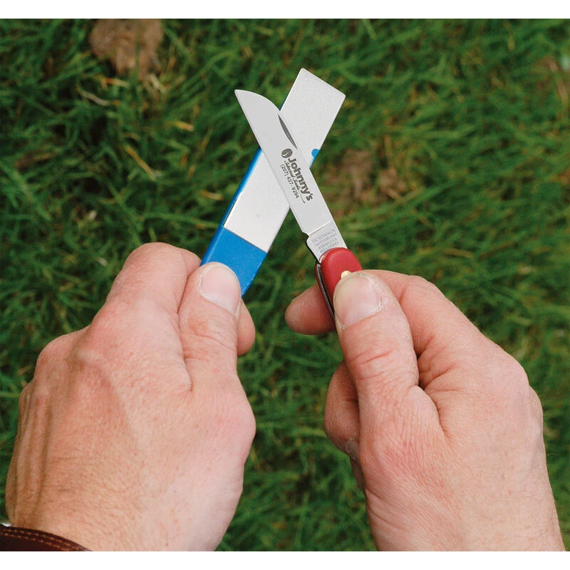 This mini hone comfortably fits your hand and is light and easy to control, while honing your fine cutting tools such as knives, pruners, scissors, etc. Best used for fast removal of steel before sharpening with the Fine Diamond Hone (#9616).