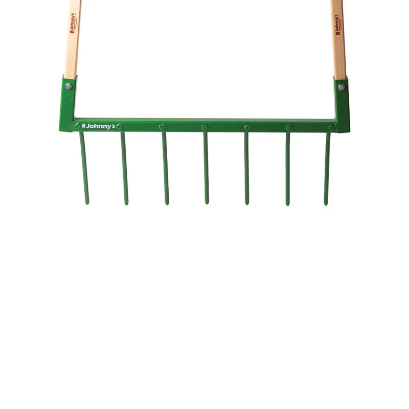 These deep-tillage tools, designed long ago in Europe and redeveloped by Eliot Coleman, are a favorite among Johnny’s customers. The design makes tilling your vegetable and flower gardens seem almost effortless because you are using your body weight to insert and maneuver the tool instead of your back and arms. Seven curved tines, approximately 10 1/2″ long with 4″ spacing in between, and 48″ oiled ashwood handles allow you to cover a lot of ground quickly. These smartly-designed, high quality tools will be a pleasure to work with for years to come. Assembled weight: 13.25 lbs. Overall width: 31″. Made in Maine. Other sizes available to match your strength and comfort level.