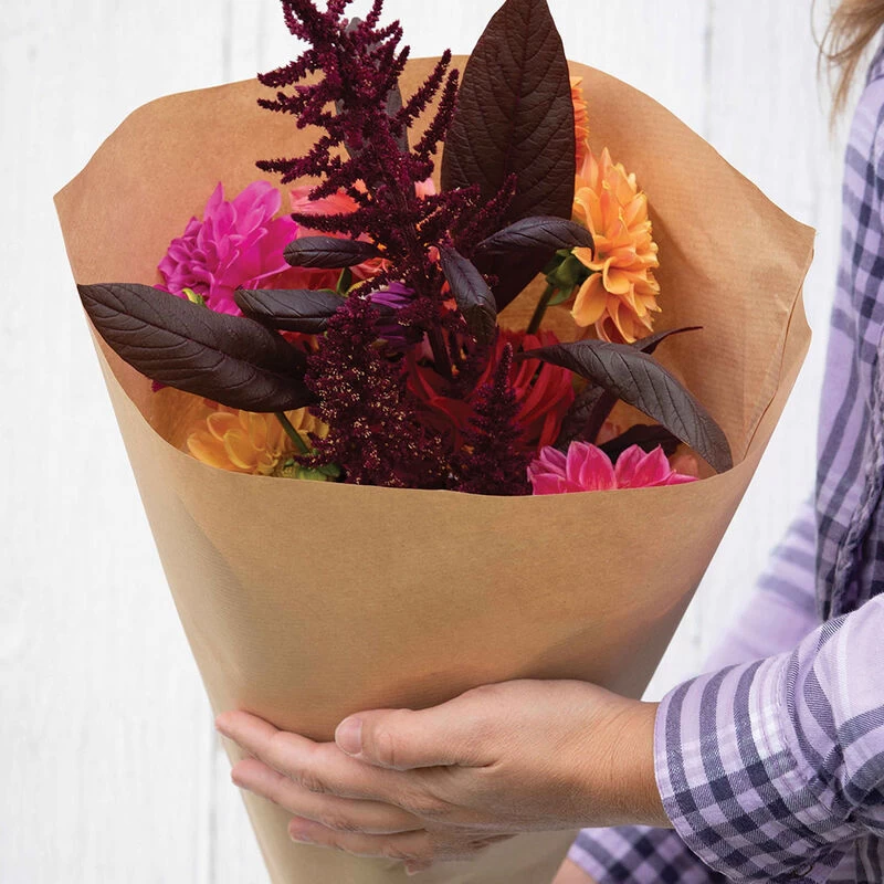 Made of renewable and sustainable brown kraft paper, these sleeves tell your customers you care. No need to spend time cutting or shaping paper. Tapered and open at the bottom for easy bouquet arrangement. Nested, for easy handling. Approximately 12″ x 12″ x 4.5″ (measured top x length x bottom). 500 count.