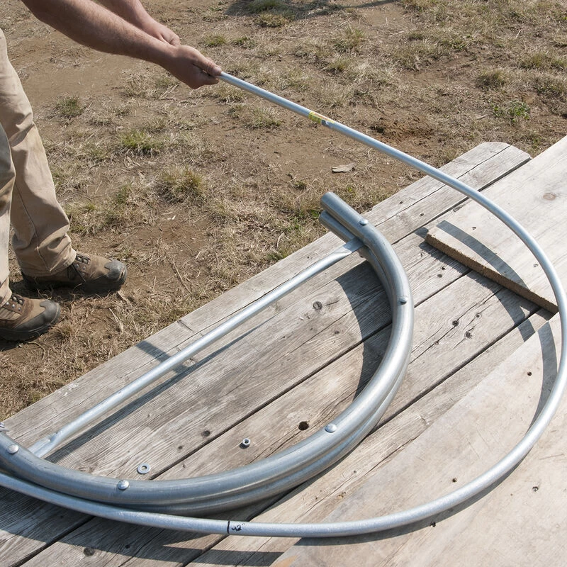 Quick Hoops Benders are an economical way to create strong low tunnel hoops out of galvanized electrical conduit (EMT) to withstand heavy winds and winter snow loads. This extra-tall low tunnel is ideal for protecting crops like cut flowers, peppers, and Brussels sprouts. Cover with fabric row cover or plastic to allow for extra degrees of warmth when temperatures are cool, exclude insect pests with insect netting, or protect cut flower petals against water damage. The Quick Hoops Bender mounts to any solid surface, such as a workbench or picnic table. Creates 3′ wide x 4.5′ tall hoops to protect crops when used with row covers; 10–15 ft. widths are recommended. This kit includes one bender and detailed instructions on how to bend your own low tunnel hoops. NOTE: We recommend using ½” conduit, which can be sourced locally.