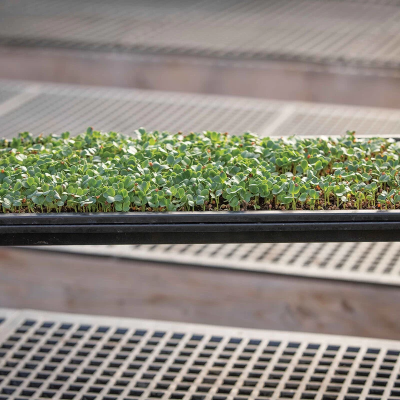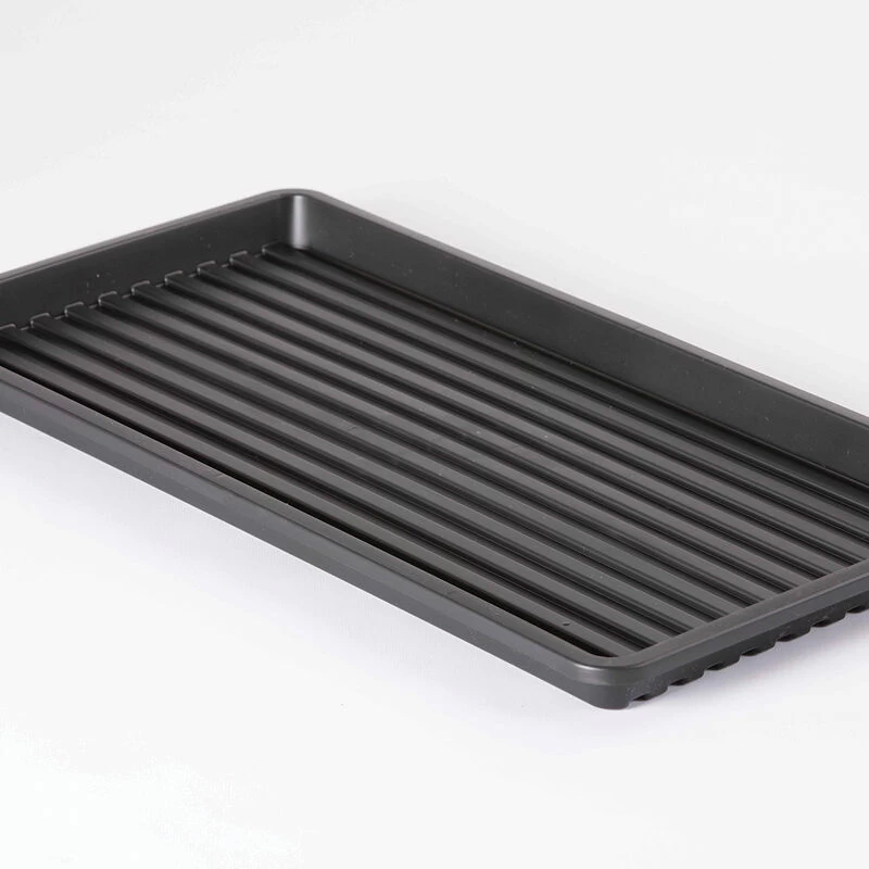 Made from tough injection-molded plastic (BPA-free) that is easy to clean/sterilize and holds up to repeated use. Used underneath a Growing Tray (#6796), sold separately, to aide in bottom watering. NOTE: Not compatible with standard 1020 flats, trays, or domes. Dimensions: 22″ x 11″ x 1 1/8″. Quantity: 1 tray.