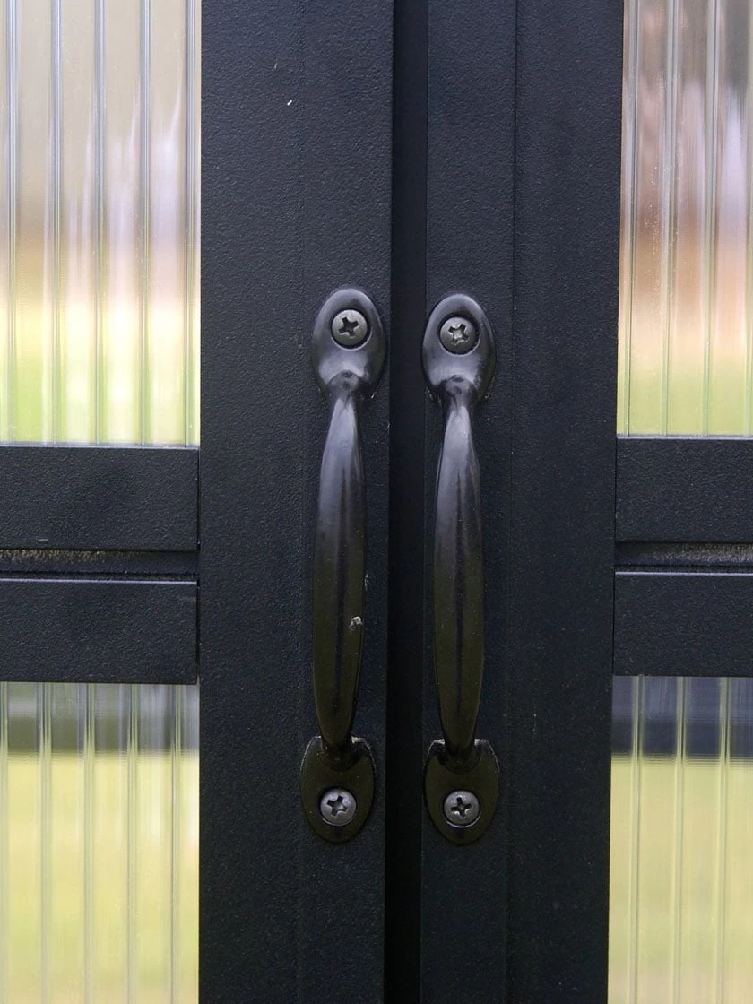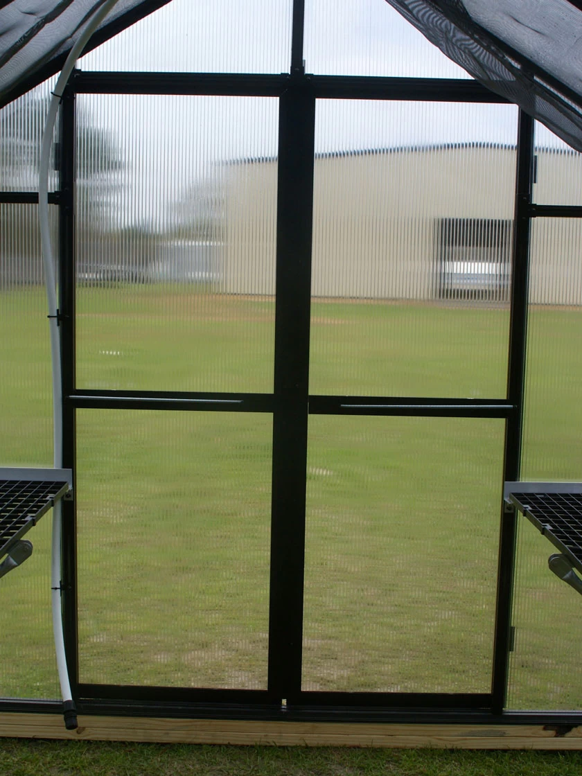 The Monticello Door Kit is designed to allow Monticello Greenhouse Owners to add an additional dual hinged door to the rear end of the their greenhouse. The doors are the same high quality doors that are used in the original Monticello Greenhouse.