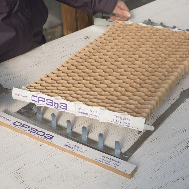For use with our Paperpot Transplanter, these Paper Chain Pots are available in 2″, 4″, and 6″ in-row spacing, with chain lengths of approximately 45′, 90′, and 130′ respectively. 264 cells per compressed chain. Ideal for closely spaced crops like onions, leeks, scallions, and shallots. May also be used for chard, flowers, Asian greens, spinach, beets, cilantro, parsley, kohlrabi, lettuce, and greens mixes. Cells are small, 1.25 x 1.25″, so we do not recommend their use for crops typically grown in larger cells. NOTE: The Paper Chain Pots used with the Paperpot Transplanter are currently under review by the National Organic Standards Board (NOSB) and National Organic Program (NOP), pending approval. Please check with your local organic certifier for appropriate updates on the NOP review process.