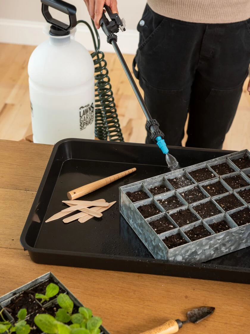 Perfect for moving between rooms to water all your houseplants without having to refill, the 2-gallon tank lets you keep spraying twice as long as most indoor watering cans. Easily adjust the watering wand to the mist setting to keep seedlings and tropicals happy with just a gentle spritz. Outdoors, you can bring your water supply with you to tend to balcony and patio plantings, as well as out-of-the-way potted plants and raised beds. You can also mix in water-soluble fertilizer or pest spray.