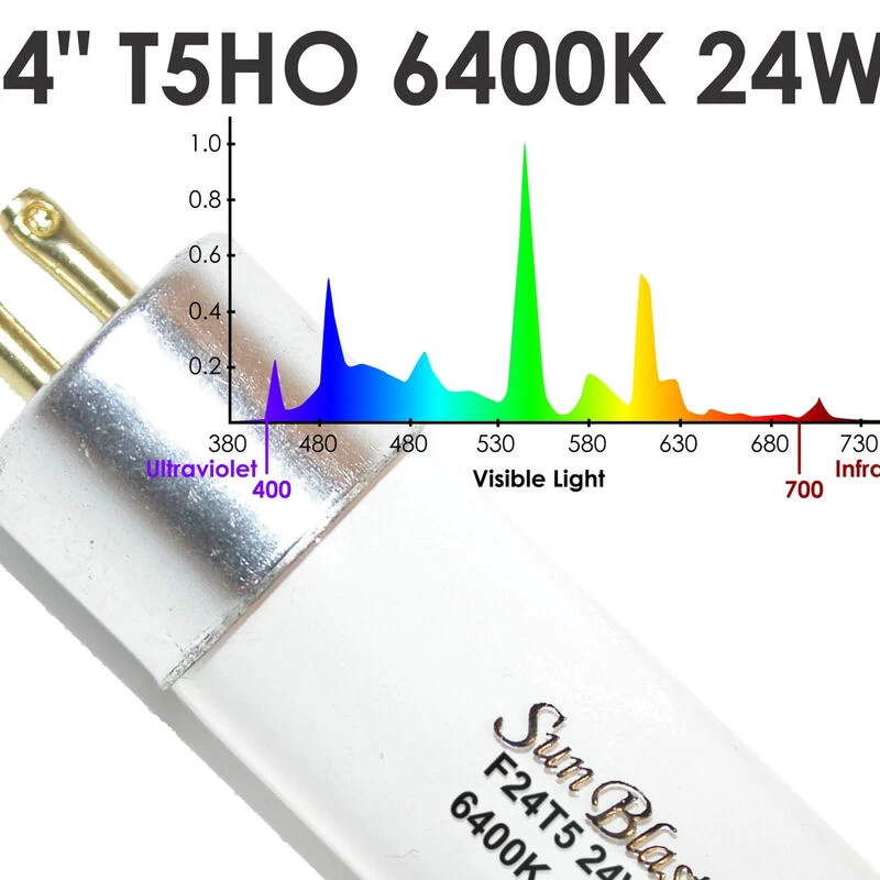 Replacement lamp for 24″ SunBlaster T5HO Strip Light fixtures. Replacing your lamp is recommended after 10,000 hours of operation for optimal growing performance with your T5HO lighting system. 6400K. Quantity: 6 lamps.