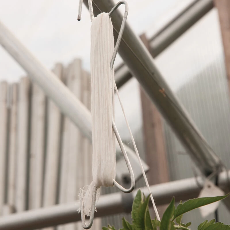 Stainless-steel hooks are equipped with 50′ (15 m) of strong UV-resistant twine for holding heavy tomato and cucumber vines. Simply flip over the double-sided hooks to release twine while sliding them down the trellis wire. These come pre-wrapped, with the last 10′ (3 m) of twine left loose, for speedy installation. Tomahook rated to 79 lb. Twine tensile strength 66 lb.